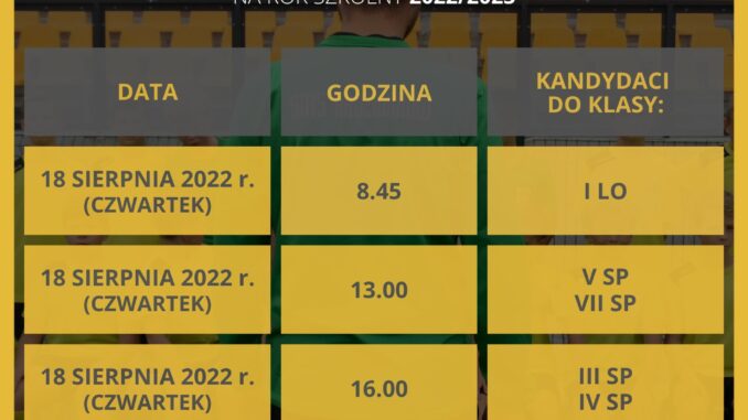 Drodzy kandydaci, poniżej przedstawiamy harmonogram trzeciej tury testów sprawnościowych dla kandydatów do SMS Radzionków na rok szkolny 2022/2023. Wszystkim niezdecydowanym przypominamy, że termin składania dokumentów mija 16 sierpnia. Serdecznie zapraszamy do kontaktu telefonicznego 32 307 50 92