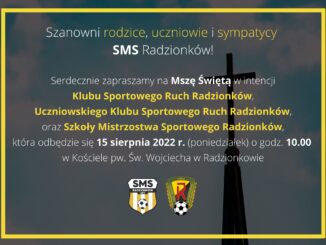 Serdecznie zapraszamy na coroczną Mszę Świętą w intencji Klubu Sportowego UKS Ruch Radzionków i KS Ruch Radzionków oraz Szkoły Mistrzostwa Sportowego Radzionków w poniedziałek 15 […]